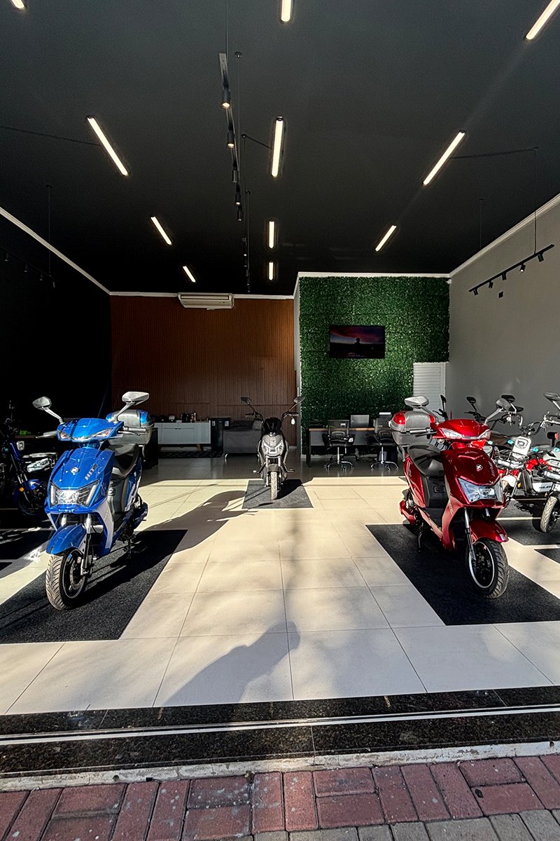 Aqui, você encontra um ambiente moderno, confortável e pensado para tirar todas as suas dúvidas sobre motos elétricas, tecnologia e desempenho. Nossa equipe está sempre à disposição para apresentar as melhores opções e ajudar você a escolher o modelo ideal para o seu dia a dia, com praticidade e economia.
